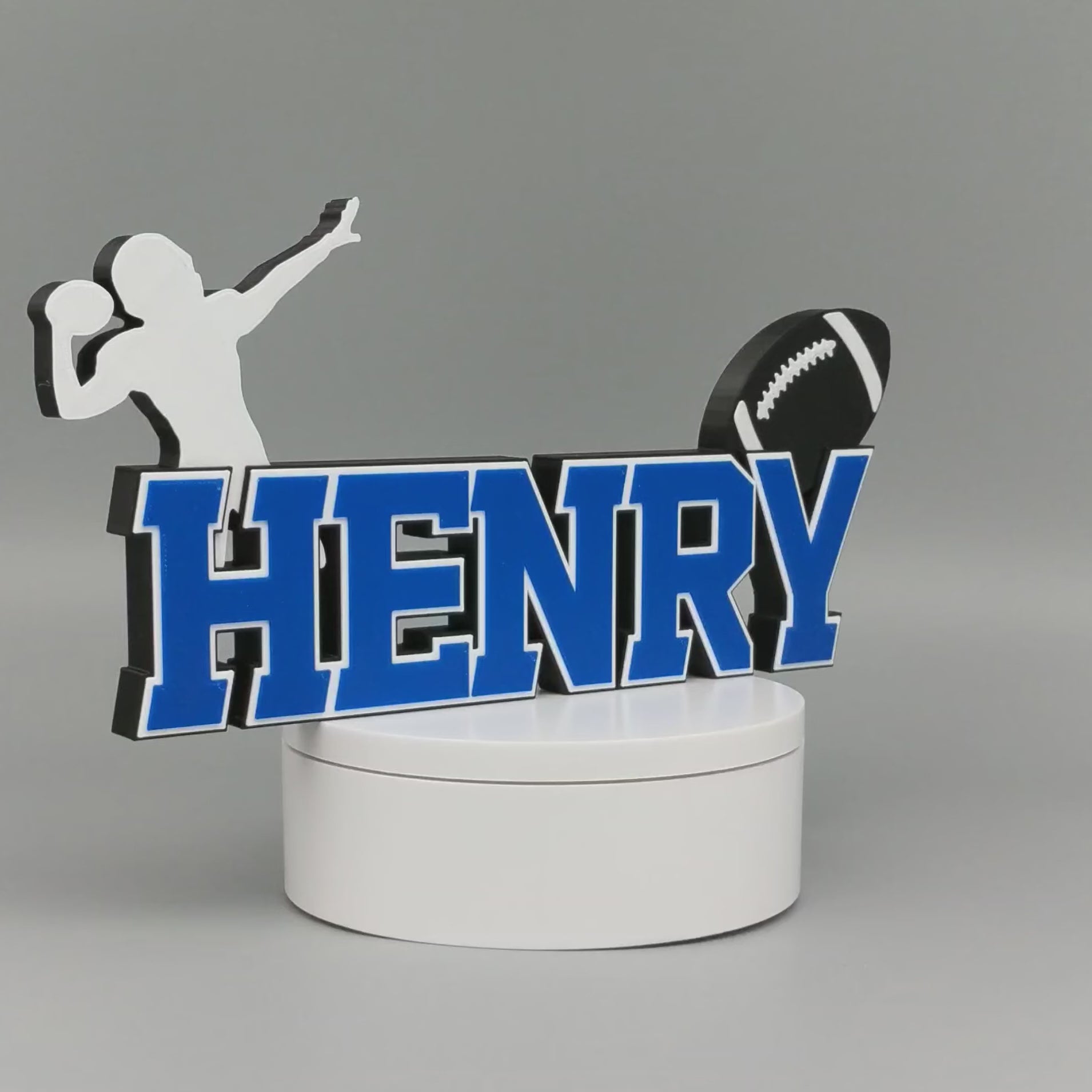 Faites un cadeau mémorable et personnalisé pour un fan de football avec notre « Quarterback ». Ajoutez le nom de votre joueur préféré ou le vôtre pour une pièce unique à afficher fièrement dans votre maison. Fabriqué de manière experte avec des matériaux de qualité, ce produit 3D a un design accrocheur qui ajoutera du style à votre décoration intérieure ou à votre collection de souvenirs. C'est le choix parfait pour célébrer une saison réussie ou montrer votre amour pour le football américain.